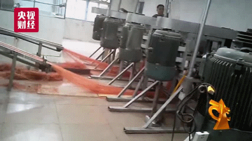 倒入滾筒里進(jìn)行充分的攪拌后,一起混合做成了辣條。。。。