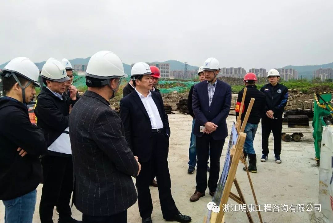章董事長在項目總監,項目負責人等一行帶領下進入項目現場,查看了項目各區域工作情況,聽取了項目負責人有關項目概況、策劃目標、建設重難點、進度計劃等方面匯報,并對項目的功能定位、建設節點提出意見和建議。