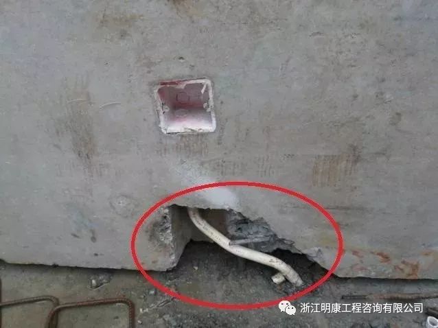 現場發現部分預制構件預埋管缺少、偏位等現象,造成現場安裝時需在預制構件鑿槽等問題,容易破壞預制構件