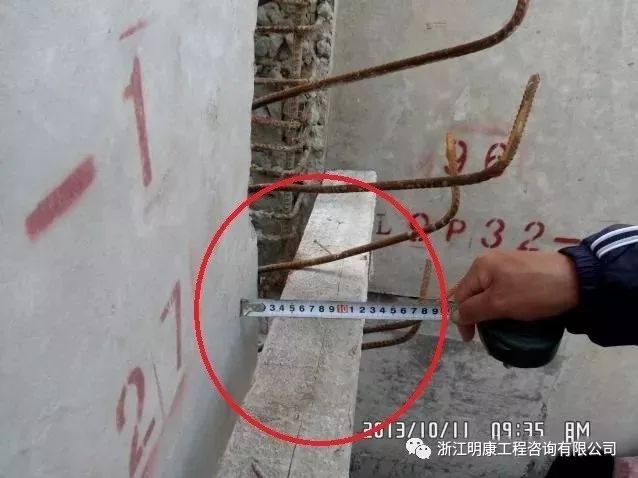 2)砼澆筑完畢后,根據插筋平面布置圖及現場構件邊線或控制線,對預留插筋進行現場預留墻柱構件插筋進行中心位置復核,對中心位置偏差超過10mm的插筋應根據圖紙進行適當的校正