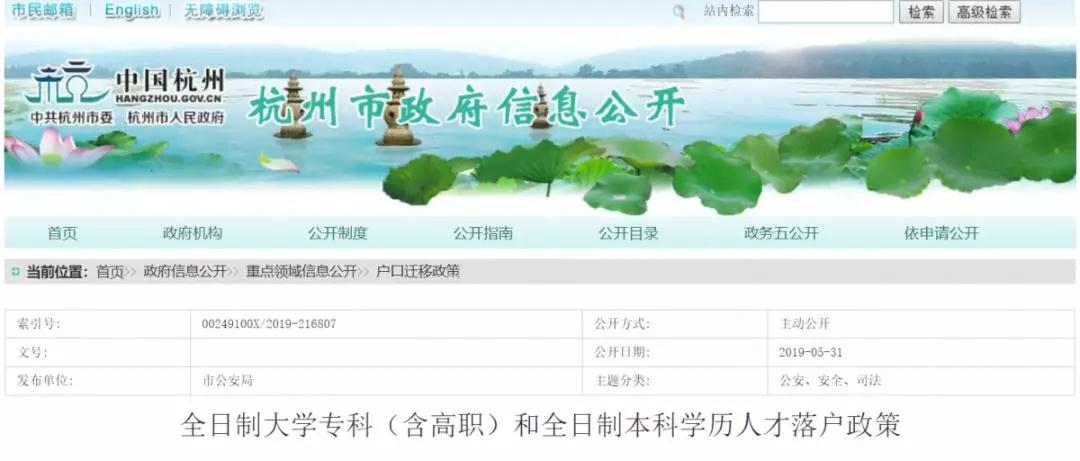 落戶貼士 | 全日制大專、本科人才落戶杭州落戶細(xì)則來(lái)了!發(fā)布日期:2019-06-05