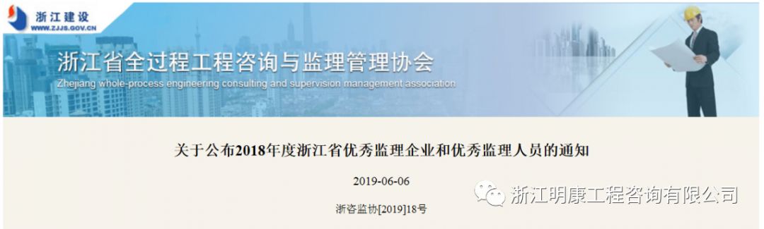 公司榮譽 | 明康咨詢榮獲2018年度浙江省優秀監理企業稱號發布日期:2019-06-19